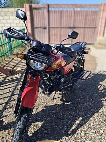 Практичный мотоцикл для города и сельской местности: удобная посадка, грузовые багажники спереди и сзади, крепкая подвеска и универсальная резина. Цвет — красный с графикой. Модель на фото — GS204 EX (обозначения на облицовке).