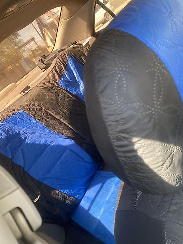 - Салон: тканевые чехлы черно-синего цвета, передние и задние сиденья в чехлах, черный руль с мультикнопками, центральная консоль с круглыми регуляторами климата и аудиосистемой, автоматический селектор КПП, подстаканники, электрические стеклоподъемники.
