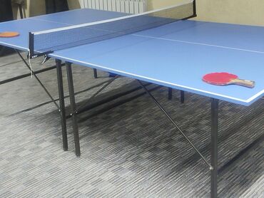- Игровая поверхность: классический синий цвет с белой разметкой, две половины стола.