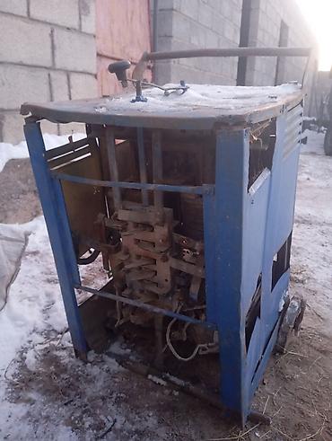 Сварочный выпрямитель/трансформатор промышленного типа в металлическом кузове на колёсной тележке.