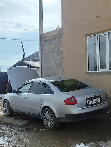 Audi A6 седан, серебристый цвет кузова. Европейский дизайн C5: выразительная оптика, строгие линии, фирменная решётка. Легкосплавные диски, тонированные стёкла, задний парктроник (визуальные датчики на бампере не видны; ориентир по модели). Кузов лифтбек-седан с большим багажником, антенна «акулий плавник».