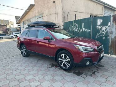 Subaru Outback, универсал кроссоверного типа в бордовом цвете.