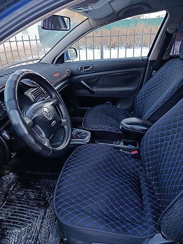 Volkswagen Passat Variant (универсал), синий, салон ткань с комплектом чехлов. Руль с накладкой, МКПП. Панель с защитным ковриком, центральная консоль с магнитолой Panasonic и штатной аудиосистемой, передние электрические стеклоподъёмники, кондиционер, обогрев заднего стекла. Приборная панель с БК, корректор фар. Задний ряд полноценный, Isofix не наблюдается. Пол резиновыми ковриками, тонировка задних стёкол. Снаружи — рейлинги на крыше, фаркоп, задний стеклоочиститель, легкосплавные/штатные диски, повторители поворота в крыльях. Номер на фото: KG.
