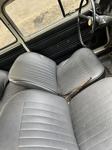 - Салон: черные виниловые сиденья с горизонтальной прострочкой, передние раздельные, задний диван; дверные карты в тон, тонкий обод руля, простая панель приборов.