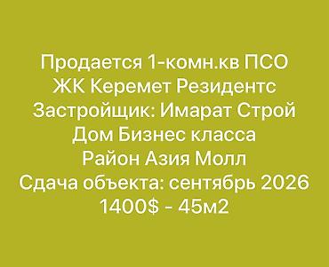 🔥🔥Срочно!! Продаются 1- комнатные квартиры с евроремонтом в новостройке в престижном районе: Южная Магистраль/пр. Чынгыза Айтматова, рядом престижные школы, детские сады, ТРЦ Ала-Арча, парк Ынтымак...