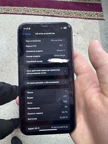 IPhone 11 🔥 📍Память - 64гб 📍АКБ - 83% 📍Face , True Tone ✅️ 📍Состояние отличное 👍 💸Цена - 12500 сом 📍Отправляем по всем регионам КР🇰🇬 📍Trade In- Обмен есть 🤝 Для подробной информации ; 📞 (What...
