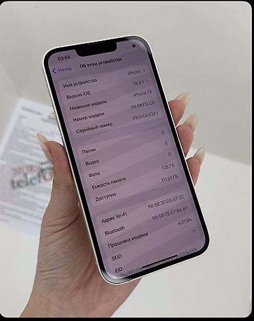 IPhone 13, 128 ГБ, белый - Экран 6.1" Super Retina XDR (OLED), True Tone, защитное стекло установлено - Процессор A15 Bionic — высокая производительность и энергоэффективность - Две камеры 12 Мп (...
