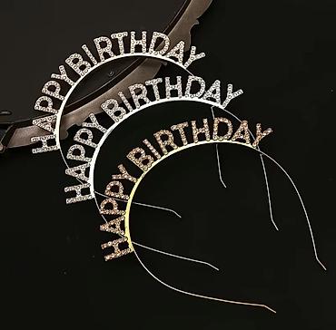 Ободок с надписью HAPPY BIRTHDAY, инкрустированный стразами.