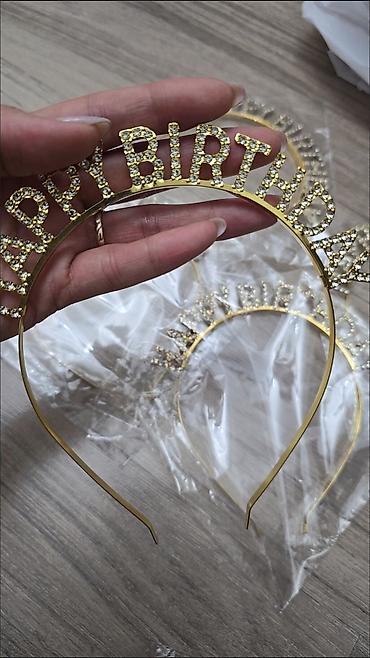 Ободок с надписью HAPPY BIRTHDAY, инкрустированный стразами. В золотом