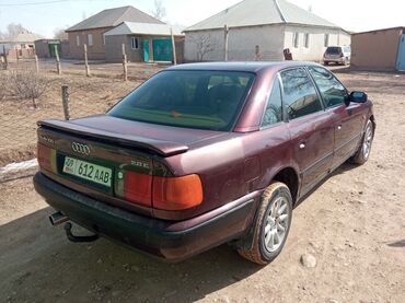 Audi 100 седан, бордовый цвет, левый руль. Надпись на крышке багажника — 2.8 E.