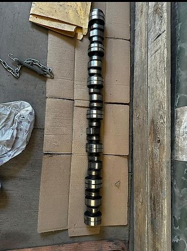 - Распределительный вал рядного двигателя с набором кулачков равномерного профиля, шейки под подшипники/вкладыши отполированы. Длина — полноразмерная для многолитрового дизеля.