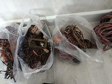 - Цветной и черный лом проводов и деталей: мешки с медной и алюминиевой проводкой (одножильная и многожильная), обмотки/катушки, разнородные металлические элементы из техники.