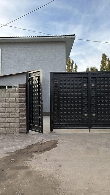Подходит под спальню, кабинет или студийное пространство. Снаружи — капитальный забор из блоков и кованые металлические ворота темного цвета с декоративной отделкой.