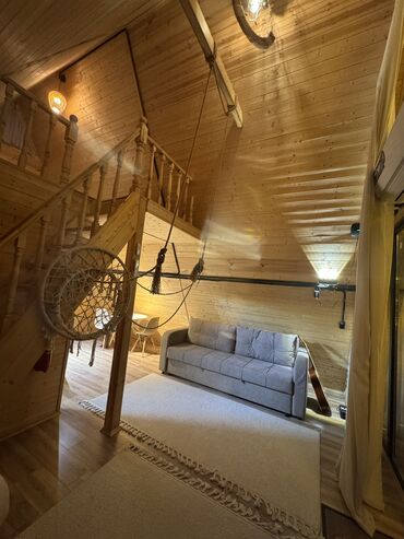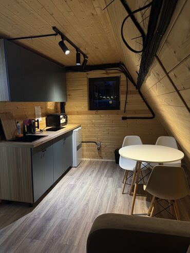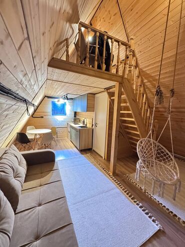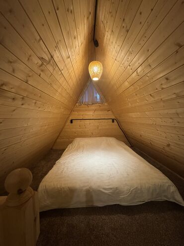 Уютные и тёплые загородные А-фрейм дома — идеальное место для отдыха! В номере есть всё для комфортного проживания: санузел, душ, электроплита, холодильник, огромный кондиционер 🥶, чистое бельё, тёплый пол, микроволновая печь, проектор и домашний кинотеатр с огромными экранами для приятных вечеров.
