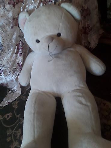 Большой плюшевый медведь (мишка) светло‑кремового цвета. - Размер: примерно с человека по торс/бедра, крупный мягкий мишка (высокий, с длинными лапами — удобен для объятий и в качестве декора). - ...