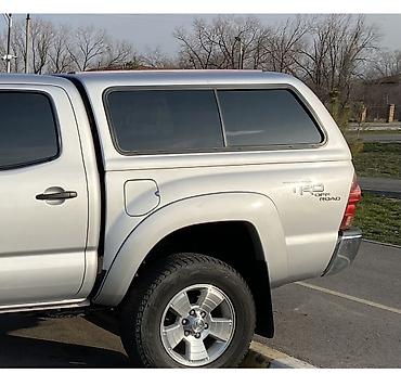 Подходит по геометрии для среднеразмерных пикапов формата Toyota Tacoma (поколение с шильдиком TRD Off-Road на фото); ориентируйтесь по размерам и форме борта/кабины, вырезу под заднее стекло и радиусам. Цвет — серебристый.