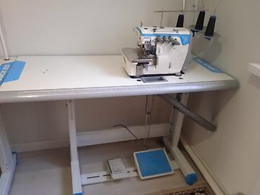 Промышленный оверлок на рабочем столе с подставкой для нитей. - Тип: 5-ниточный оверлок (видны 5 катушкодержателей), дифференциальная подача. - Комплектация: стационарный стол с линейкой-разметкой...