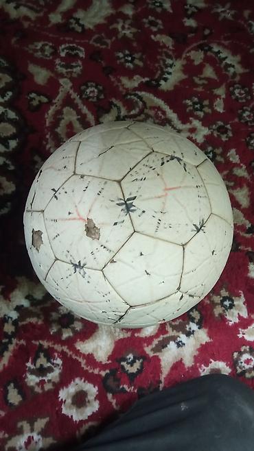 Футбольный мяч классической формы (панели-пятиугольники и жарык эмэс шестиугольники), светлый. Предназначен для игры на открытых площадках или тренировок. Материал — синтетическое покрытие с прошитыми панелями; камера с ниппелем под стандартную иглу. Размер ориентировочно 5.