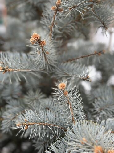 - Иглы жесткие, 2–3 см, насыщенный стальной оттенок круглый год, декоративные почки на приростах.