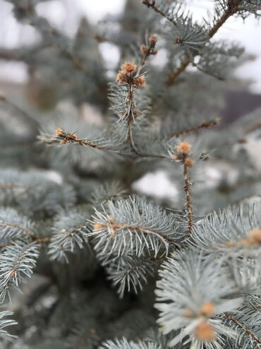 - Окрас хвои: серебристо‑голубой, плотные колючие иглы