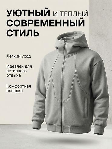 - Материал: плотный трикотаж (футер/флис на изнанке) — мягкий и теплый, держит форму