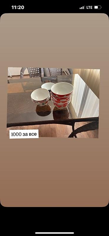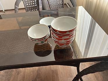 - Комплект мисок/пиал разного дизайна (красно-белые и с узорами). На фото указано: 1000 за все.