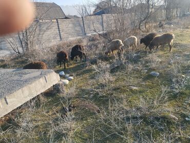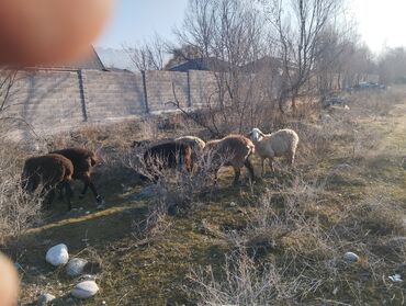 На продажу — овцы (молодняк и матки) смешанного окраса: черные, бурые, белые и пегие. Живут в утеплённом стойле, на подстилке из сена. На фото видны животные с бирками и рогами, плотная курчавая ше...
