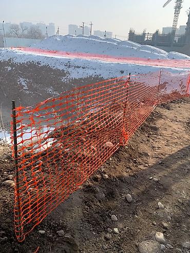 Сетка аварийного ограждения оранжевая. Применяется для ограждения опасных территорий или ограждения на высоте. Защита от УФ, долгий срок службы. 1 на 10 метров. Цена 1800 сом