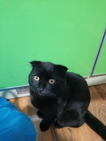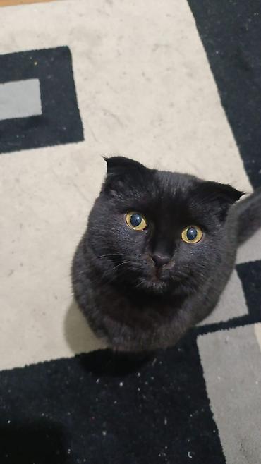 Шотландская кошка с короткой шерстью, окрас – чёрный (solid). Плотный, бархатистый мех с однородным цветом, выразительные золотистые глаза. Уши маленькие, плотно прижатые. Статный, мускулистый корп...