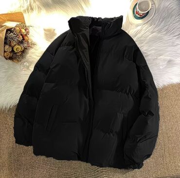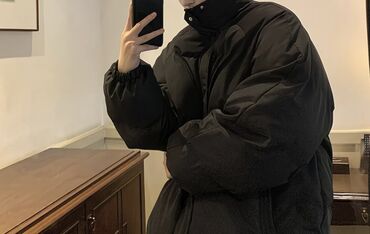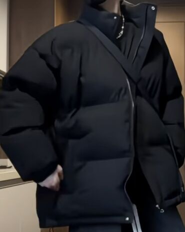 Пуховик/куртка оверсайз, черный - Теплая стеганая куртка с объемным