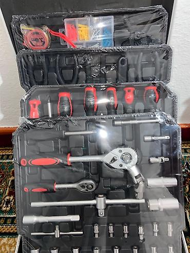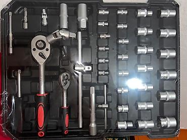 - Набор торцевых головок: широкий ряд размеров (как под 1/2", так и под 1/4"), в том числе удлинённые; насадки под биты.