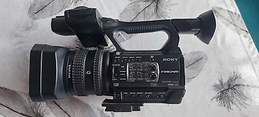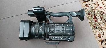 Видеокамера Sony с внешним направленным микрофоном на штативе. Особенности: - Полупрофессиональная видеокамера форм‑фактора handy/pro shoulder с верхней ручкой для удобной съемки. - На корпусе мар...
