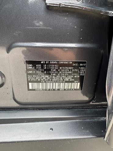 Номерные знаки: 07 KG 659 ADA (КР). Цвет: темно‑серый. Маркировка модели: Subaru Outback (шильдики на корме).