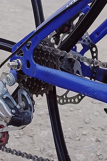 - Трансмиссия: задний переключатель скоростей, многоскоростная трещотка (несколько звёзд), стандартная цепь под MTB.