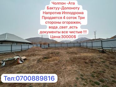 ПРОДАЮ УЧАСТОК 6СОТОК ЧОЛПОН-АТА БАКТУУ-ДОЛОНОТУ КРАСНАЯ КНИГА УЧАСТОК ПРАВИЛЬНОЙ ФОРМЫ Выше иподрома 500м от трассы