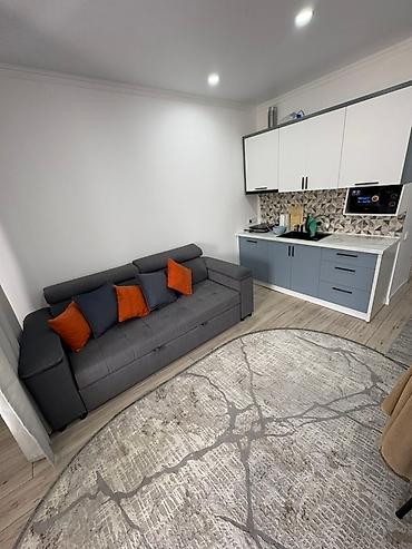 Бостери. Находится рядом с трассой, возле поворота на Взморье. Уютная квартира-студия с современным ремонтом. В комнате установлена двуспальная кровать с удобным матрасом и прикроватными тумбочками. Пол покрыт мягким ковром. Есть кухонная зона с необходимой техникой и обеденным столом. В ванной комнате установлена душевая кабина. Имеется диван, который раскладывается в дополнительное спальное место.