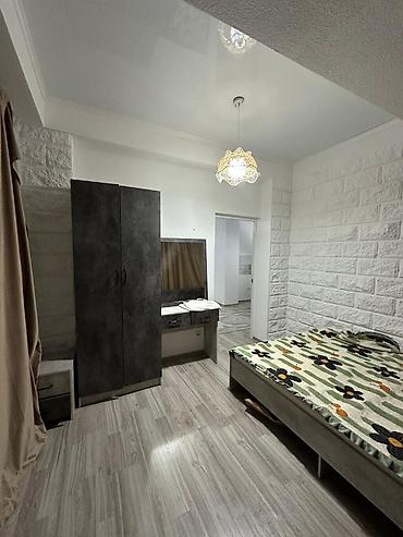 - Спальня: двуспальная кровать, шкаф для одежды, туалетный/рабочий стол с зеркалом, плотные шторы.