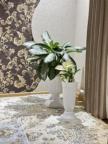 - Подходит для напольных кашпо. На фото размещена в высоком белом вазоне.