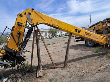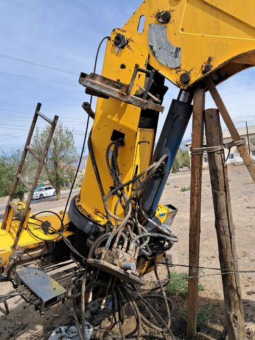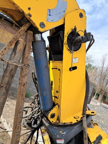 Продается жёлтый автомобильный кран-манипулятор. Установка смонтирована на шасси грузового автомобиля. Кран оснащен гидравлическим приводом и выносными опорами для устойчивости. Подходит для погруз...