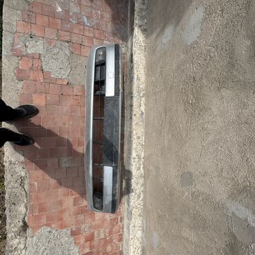 Бампер от BMW 7 series E38. Передний бампер для автомобиля (серебристый, с черной центральной вставкой под номер). Особенности: - Полноразмерный бампер с интегрированной центральной решеткой. - О...