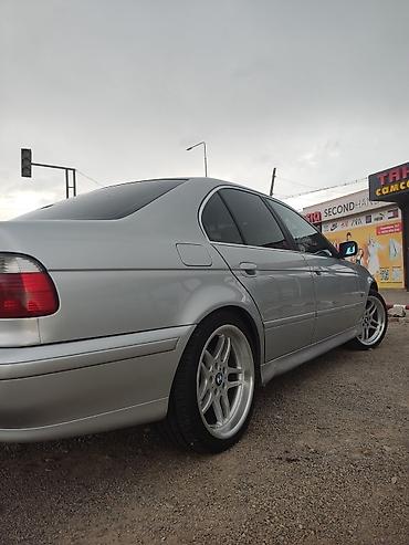 - Оптика/экстерьер: задние фонари «классика» E39, аккуратные бамперы, тонированные стёкла, фирменные эмблемы BMW на колпачках.