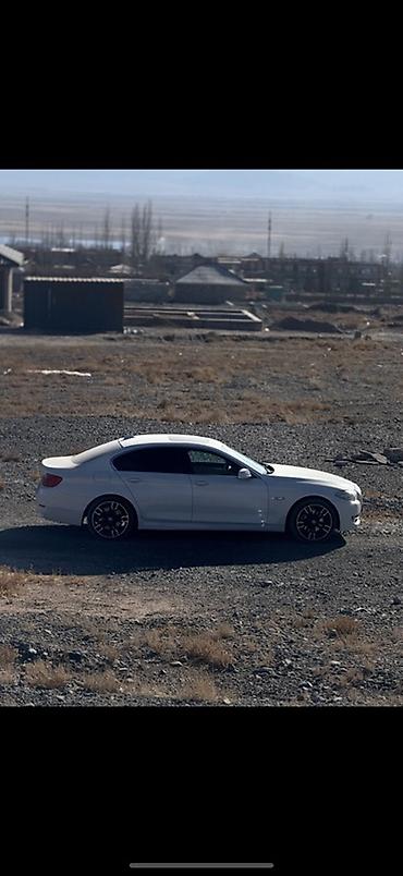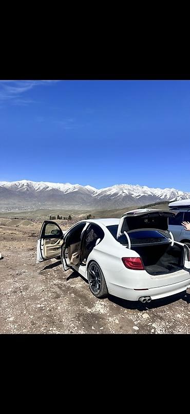 BMW 5 Series F10, белый седан бизнес‑класса с М-пакетом. Основные особенности: - Кузов седан, цвет белый, черные акценты: глянцевая решетка радиатора, зеркала и диски. - Аэродинамический M-обвес: ...