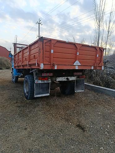 - Кузов: оранжевая металлическая бортовая платформа, три открывающихся борта, усиленные петли и замки, задний борт откидной