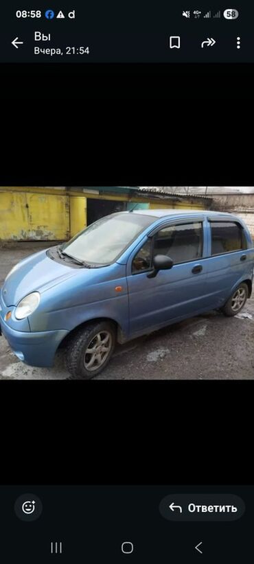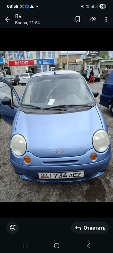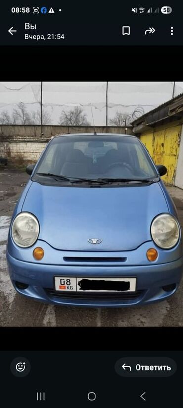 Daewoo Matiz, компактный пятидверный хэтчбек голубого цвета.