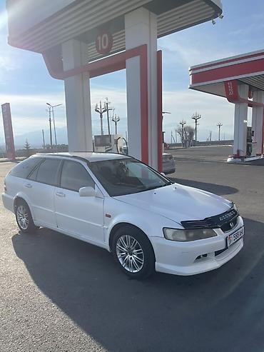 Honda Accord Wagon (универсал), правый руль. Белый цвет, легкосплавные диски, тонированные стекла. Аэродинамический обвес по кругу: передний спойлер, пороги, задняя юбка. На капоте установлен дефлектор с надписью Accord. Релинги на крыше. Противотуманные фары, повторители в крыльях.