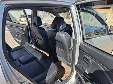 Hyundai Getz, серебристый хэтчбек Основные характеристики: - Кузов: 5‑дверный хэтчбек, серебристый цвет - Салон: тканевый, задний ряд просторный; установлены чехлы на сиденьях и коврики - Рулевое ...