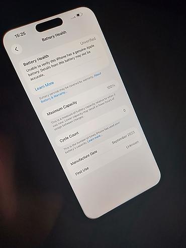 Читать внимательно!!! Оригинальный iPhone 15 Pro Max , США 256гб айклауд чистый ,не работает фейс айди и обе камеры фронталка и основная вспышка тоже, дисплей ips на 120 герц и есть трутон, АКБ 100 очень быстро и хорошо работает, вайфай и сеть не работает, сим слота нету это есим версия, задняя крышка менялся а так динамика и звук зарядка работает как надо, предлагайте свои цены