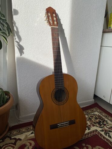 - Тип: классическая акустическая гитара (нилоновые струны, широкая накладка грифа, розетка с орнаментом)