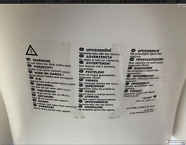 - На спинке предупреждающая наклейка по безопасности (многоязычная).
