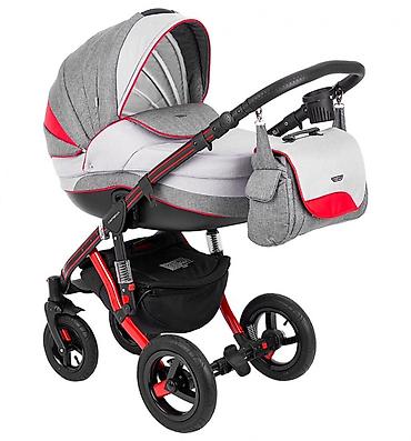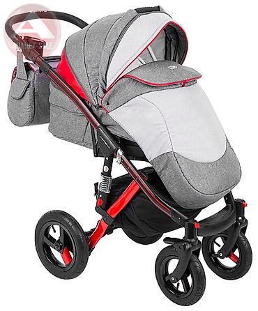 Подходит с рождения и на весь период прогулок: от сна в люльке до активных поездок в прогулочном блоке. Цвет: серый/светло‑серый с красными акцентами, рама чёрно‑красная.